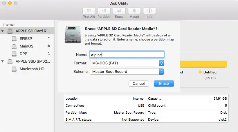 - Check your SD Card is mounted (in this case named "ALPINE")