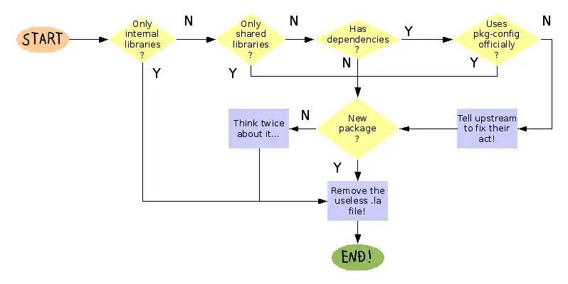 In all other cases, .la can usually be safely deleted. See the flowchart created by Diego Elio Pettenò (aka flameeyes) documenting this in a more graphically intuitive way: