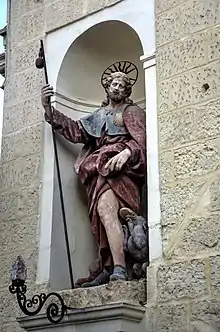 ![]() 1950s painting at St George's Basilica depicting the saint as protecting Gozo from the 1676 plague | |