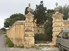 During the epidemic, the deceased were usually not buried in churches as was common practice at the time.[18] Burials were held in various locations, particularly in specially-established extramural cemeteries, around fortifications or abandoned churches. Inhabitants of Valletta were buried in a cemetery on the Isolotto (now known as Manoel Island), while those of Cospicua and Senglea were buried in cemeteries outside the cities' fortifications. The deceased of Birgu were buried at Il-Hisieli.[3] People were also buried at a cemetery in Cospicua known as Iċ-Ċimiterju tal-Infetti (Cemetery for Infectious Diseases), which still exists today.[19]