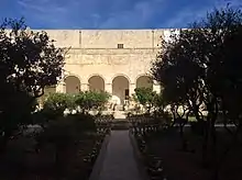 Trade stopped immediately after the outbreak was identified as the plague. On 5 May, public buildings including the law courts and the theatre were closed down. The urban settlements in the harbour area: Valletta and its suburb Floriana, and the Three Cities of Birgu, Cospicua and Senglea were placed under medical observation.[16] Direct and indirect contact between people was discouraged, especially at markets.[17] On 7 May, any communication between ships and the shore was forbidden,[18] and Bishop Ferdinando Mattei ordered all churches to be closed on 9 May.[1] The government published an account of the 1743 plague in Messina to inform the public of the consequences of an outbreak.[23]