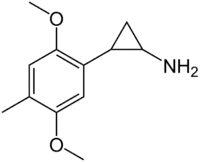 2,5-Dimethoxy-4-methylphenylcyclopropylamine (DMCPA) is a lesser-known psychedelic drug and a substituted amphetamine. DMCPA was first synthesized by Alexander Shulgin. In his book PiHKAL, the dosage range is listed as 15–20 mg and the duration is listed as 4–8 hours.[1] DMCPA produces open-eye visuals, anorexia, and psychedelic dreams. Shulgin gives it a +++ on the Shulgin Rating Scale.