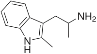 2,alpha-DMT, or 2,α-dimethyltryptamine, is a tryptamine and a lesser-known psychedelic drug. It is the 2,a-dimethyl analog of DMT. 2,α-DMT was first synthesized by Alexander Shulgin. In his book TiHKAL (Tryptamines I Have Known and Loved), Shulgin lists the dosage as 300-500 mg, and the duration as 7–10 hours.[1] 2,α-DMT causes mydriasis and paresthesia. It also produces a calm, drunk-like feeling. Very little data exists about the pharmacological properties, metabolism, and toxicity of 2,α-DMT.