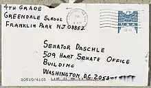 Envelope addressed to Senator Thomas Daschle, postmarked October 9, 2001