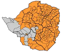 The 2008 outbreak began in Chitungwiza on 20 August 2008.[32] In September, cases spread to the urban areas of Makonde and Chinhoyi.[32] By the end of October, cases had spread to 3 provinces: Mashonaland West, Mashonaland East, and Harare city. In the first two weeks of November, the epidemic rapidly spread across Zimbabwe, appearing in a total of 9 provinces and 54 districts.[32] The disease spread to reach all of Zimbabwe's ten provinces.[1][12] The attack rate was highest in Beitbridge, Chegutu, Mudzi and Zvimba Districts (above 1,000 cases per 100,000 people or 1.0%).[5]