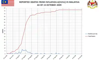 - "H1N1: Eight More Deaths Today, Death Toll Is 26". Bernama. 9 August 2009. Archived from the original on 10 September 2009. Retrieved 30 August 2009.
