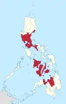 The Department of Health (DOH) of the Philippines declared a measles outbreak in Metro Manila due to a 550% increase of the number of patients from January 1 to February 6, 2019 compared to figures of the equivalent period from 2018.[1] Outbreaks were also officially declared in Central Luzon, Calabarzon, Western Visayas, Central Visayas.[2][3] and Northern Mindanao.[4] A joint report by the United Nations Children's Fund (UNICEF) and World Health Organization has stated in the report that the outbreak started much earlier in late-2017 in Mindanao.[5]