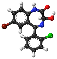 3-Hydroxyphenazepam is a benzodiazepine with hypnotic, sedative, anxiolytic, and anticonvulsant properties.[1] It is an active metabolite of phenazepam,[1][2] as well as the active metabolite of the benzodiazepine prodrug cinazepam.[3] Relative to phenazepam, 3-hydroxyphenazepam has diminished myorelaxant properties, but is about equivalent in most other regards.[1] Like other benzodiazepines, 3-hydroxyphenazepam behaves as a positive allosteric modulator of the benzodiazepine site of the GABAA receptor with an EC50 value of 10.3 nM.[4][5][6] It has been sold online as a designer drug.[7][8][9][10]