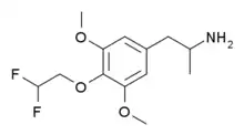 3C-DFE is a lesser-known psychedelic drug, which is a fluorinated derivative of 3C-E. It was first synthesised by Daniel Trachsel in 2002,[1][2] and has been reported as showing similar psychedelic activity to related compounds, with a dose range of around 20–40 mg and a duration of approximately 10 hours.[3]:736 Despite its reported psychedelic activity, binding studies in vitro showed 3C-DFE to have a surprisingly weak binding affinity of 2695 nM at 5-HT2A with negligible affinity at 5-HT2C,[3]:737 making it only slightly higher affinity than mescaline, despite its higher potency in vivo.