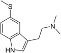 5-MeS-DMT (5-methylthio-N,N-dimethyltryptamine) is a lesser-known psychedelic drug. It is the 5-methylthio analog of dimethyltryptamine (DMT). 5-MeS-DMT was first synthesized by Alexander Shulgin. In his book TiHKAL (Tryptamines I Have Known and Loved), the minimum dosage is listed as 15-30 mg.[1] The duration listed as very short (less than one hour), just like DMT. 5-MeS-DMT produces similar effects to DMT, but weaker. Shulgin describes his feelings while on a low dose of this drug as "pointlessly stoned", although at a higher dose of 20 mg he says it is "quite intense" and suggests that a higher dose still might have full activity.