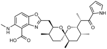 The core biosynthetic enzymes are thought to include 3 proteins for the biosynthesis of the α-ketopyrrole moiety, 5 for modular type I polyketide synthases for the spiroketal ring, 4 for the biosynthesis of 3-hydroxyanthranilic acid, an N-methyltransferase tailoring enzyme, and a type II thioesterase.[6]