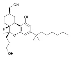 - Drake DJ, Jensen RS, Busch-Petersen J, Kawakami JK, Concepcion Fernandez-Garcia M, Fan P, Makriyannis A, Tius MA (September 1998). "Classical/nonclassical hybrid cannabinoids: southern aliphatic chain-functionalized C-6beta methyl, ethyl, and propyl analogues". Journal of Medicinal Chemistry. 41 (19): 3596–608. doi:10.1021/jm960677q. PMID 9733485.