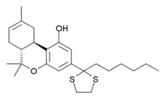 - Mavromoustakos T, Theodoropoulou E, Zervou M, Kourouli T, Papahatjis D (January 1999). "Structure elucidation and conformational properties of synthetic cannabinoids (-)-2-(6a,7,10,10a-tetrahydro-6,6,9-trimethyl-1-hydroxy-6H-dibe nzo [b,d]pyranyl)-2-hexyl-1,3-dithiolane and its methylated analog". Journal of Pharmaceutical and Biomedical Analysis. 18 (6): 947–56. doi:10.1016/s0731-7085(98)00100-9. PMID 9925329.