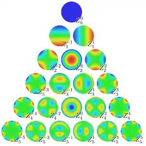 In each Zernike polynomial , the subscript n is the order of aberration, all the Zernike polynomials in which n=3 are called third-order aberrations and all the polynomials with n=4, fourth order aberrations and so on. and are usually called secondary Astigmatism and should not cause confusion. The superscript m is called the angular frequency and denotes the number of times the Wavefront pattern repeats itself.[4]
