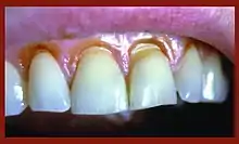 Abfraction is a form of non-carious tooth tissue loss that occurs along the gingival margin.[2] In other words, abfraction is a mechanical loss of tooth structure that is not caused by tooth decay, located along the gum line. There is theoretical evidence to support the concept of abfraction, but little experimental evidence exists.[3]