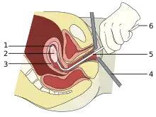 Dilation and evacuation (D&E), used after 12 to 16 weeks, consists of opening the cervix and emptying the uterus using surgical instruments and suction. D&E is performed vaginally and does not require an incision. Intact dilation and extraction(D&X) refers to a variant of D&E sometimes used after 18 to 20 weeks when removal of an intact fetus improves surgical safety or for other reasons.[71]