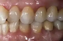 In dentistry, an abutment is a connecting element.[1] This is used in the context of a fixed bridge (the "abutment teeth" referring to the teeth supporting the bridge), partial removable dentures (the "abutment teeth" referring to the teeth supporting the partial) and in implants (used to attach a crown, bridge, or removable denture to the dental implant fixture). The implant fixture is the screw-like component that is osseointegrated.