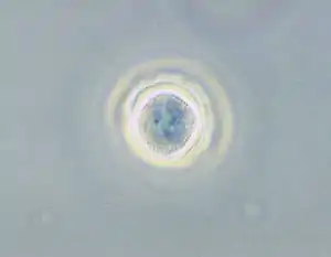 | Phase contrast micrograph of an Acanthamoeba polyphaga cyst. | |