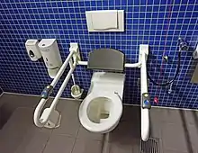 An accessible toilet is designed to accommodate people with physical disabilities. Persons with reduced mobility find them useful, as do those with weak legs, as a higher toilet bowl makes it easier for them to stand up. Additional measures to add accessibility are providing more space and grab bars to ease transfer to and from the toilet seat, and including enough room for a caregiver if necessary. Some countries have requirements concerning the accessibility of public toilets. Toilets in private homes can be modified (retrofitted) to increase accessibility.