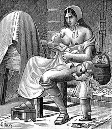 In some cases, the accessory breast may not be visible at the surface. In these cases, it may be possible to distinguish their appearance from normal breast tissue with MRI.[1] In other cases, accessory breasts have been known to lactate, as illustrated in a drawing showing a child nursing at ectopic breast tissue on the lateral thigh.[2]