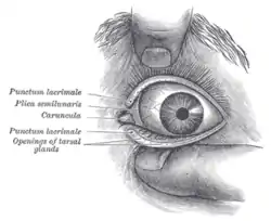 The lacrimal apparatus is the physiological system containing the orbital structures for tear production and drainage.[3]