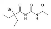 Acecarbromal (INN) (brand names Sedamyl, Abasin, Carbased, Paxarel, Sedacetyl, numerous others), also known as acetylcarbromal and acetyladalin, is a hypnotic and sedative drug of the ureide (acylurea) group discovered by Bayer in 1917[1] that was formerly marketed in the United States and Europe.[2][3] It is also used in combination with extract of quebracho and vitamin E as a treatment for erectile dysfunction under the brand name Afrodor in Europe.[4][5][6] Acecarbromal is structurally related to the barbiturates, which are basically cyclized ureas.[7] Prolonged use is not recommended as it can cause bromine poisoning.[7]