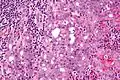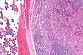 | Micrograph of an acinic cell carcinoma (right of image) and acinar glands (parotid gland - left of image). H&E stain. | |
