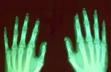 The diffuse pattern of resorption has a widely diverse differential diagnosis which includes: pyknodysostosis, collagen vascular disease and vasculitis, Raynaud's neuropathy, trauma, epidermolysis bullosa, psoriasis, frostbite, sarcoidosis, hypertrophic osteoarthropathy, acromegaly, and advanced leprosy.[1][2][3]