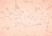 Actinobacillus is a genus of Gram-negative, nonmotile and non-spore-forming, oval to rod-shaped bacteria occurring as parasites or pathogens in mammals, birds, and reptiles.[1] It is a member of the family Pasteurellaceae.[2] The bacteria are facultatively anaerobic or aerobic, capable of fermenting carbohydrates (without production of gas), and of reducing nitrates. The genomic DNA contains between 40 and 47 mol % guanine plus cytosine.