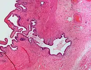 | Micrograph showing Rokitansky–Aschoff sinus. H&E stain. |