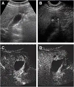 - Tang S, Huang L, Wang Y, Wang Y (August 2015). "Contrast-enhanced ultrasonography diagnosis of fundal localized type of gallbladder adenomyomatosis". BMC Gastroenterology. 15 (1): 99. doi:10.1186/s12876-015-0326-y. PMC 4524444. PMID 26239485.