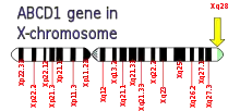 ALD is caused by mutations in ABCD1, located at Xq28 and demonstrates X-linked recessive inheritance. The gene ABCD1 encodes a peroxisomal membrane transporter which is responsible for transporting very long chain fatty acid substrate into the peroxisomes for degradation.[5] Mutations in this gene that interfere with this process cause this syndrome.