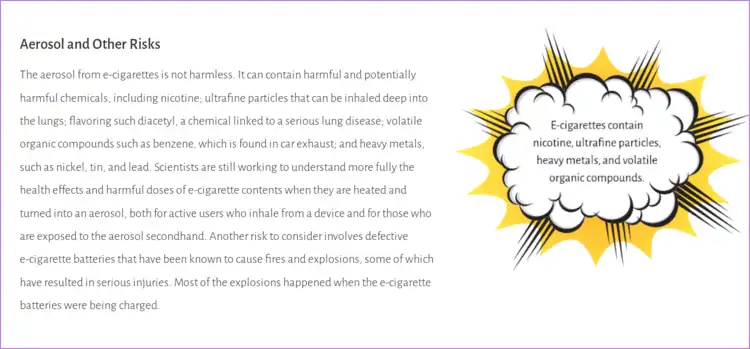 314. "Know The Risks: E-Cigarettes & Young People – Aerosol and Other Risks". Surgeon General of the United States. 2016. This article incorporates text from this source, which is in the public domain.