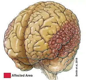 The effects of polymicrogyria (PMG) can be either focal or widespread. Although both can have physiological effects on the patient, it is hard to determine PMG as the direct cause because it can be associated with other brain malformations. Most commonly, PMG is associated with Aicardi and Warburg micro syndromes.[9] These syndromes both have frontoparieto polymicrogyria as their anomalies. To ensure proper diagnosis, doctors thus can examine a patient through neuroimaging or neuropathological techniques.[9]