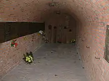 All hospitals and mental asylums of the Wartheland were emptied. The region was incorporated into Germany and earmarked for resettlement by Volksdeutsche following the German conquest of Poland.[66] In the Danzig (now Gdańsk) area, some 7,000 Polish patients of various institutions were shot and 10,000 were killed in the Gdynia area. Similar measures were taken in other areas of Poland destined for incorporation into Germany.[67] The first experiments with the gassing of patients were conducted in October 1939 at Fort VII in Posen (occupied Poznań), where hundreds of prisoners were killed by means of carbon monoxide poisoning, in an improvised gas chamber developed by Albert Widmann, chief chemist of the German Criminal Police (Kripo). In December 1939, Reichsführer-SS Heinrich Himmler witnessed one of these gassings, ensuring that this invention would later be put to much wider uses.[68]