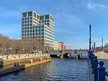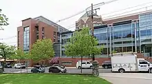 Between 2003 and 2006, the University purchased a number of properties in Providence's Jewelry District to accommodate for the expansion of medical facilities beyond the historic College Hill neighborhood.[17] In August 2011, the University completed the process of renovating a former industrial building at 222 Richmond Street to serve as the school's primary facility. Combined with another renovation project at adjacent 70 Ship Street, the opening of 222 Richmond Street marked the school's relocation from facilities primarily on College Hill to those primarily Downtown.[18][19]