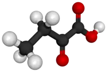 α-Ketobutyric acid is an organic compound with the formula CH3CH2C(O)CO2H. It is a colorless solid that melts just above room temperature. Its conjugate base α-ketobutyrate is the predominant form found in nature (near neutral pH). It results from the lysis of cystathionine. It is also one of the degradation products of threonine, produced by the catabolism of the amino acid by threonine dehydratase. It is also produced by the degradation of homocysteine and the metabolism of methionine.