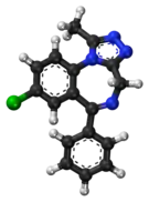 Alprazolam, sold under the brand name Xanax, among others, is a short-acting tranquilizer of the triazolobenzodiazepine (TBZD) class, which are benzodiazepines (BZDs) fused with a triazole ring.[6] It is most commonly used in short-term management of anxiety disorders, specifically panic disorder or generalized anxiety disorder (GAD).[7] Other uses include the treatment of chemotherapy-induced nausea, together with other treatments.[5] GAD improvement occurs generally within a week.[8][9] Alprazolam is generally taken by mouth.[5]