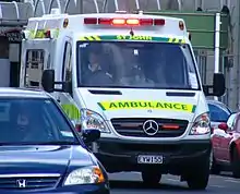 Emergency ambulances are highly likely to be involved in hazardous situations, including incidents such as a road traffic collision, as these emergencies create people who are likely to be in need of treatment. They are required to gain access to patients as quickly as possible, and in many countries, are given dispensation from obeying certain traffic laws. For instance, they may be able to treat a red traffic light or stop sign as a yield sign ('give way'),[55] or be permitted to break the speed limit.[56] Generally, the priority of the response to the call will be assigned by the dispatcher, but the priority of the return will be decided by the ambulance crew based on the severity of the patient's illness or injury. Patients in significant danger to life and limb (as determined by triage) require urgent treatment by advanced medical personnel,[57] and because of this need, emergency ambulances are often fitted with passive and active visual and/or audible warnings to alert road users.