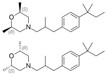 Amorolfine (or amorolfin), is a morpholine antifungal drug that inhibits Δ14-sterol reductase and cholestenol Δ-isomerase, which depletes ergosterol and causes ignosterol to accumulate in the fungal cytoplasmic cell membranes. Marketed as Curanail, Loceryl, Locetar, and Odenil, amorolfine is commonly available in the form of a nail lacquer, containing 5% amorolfine hydrochloride as the active ingredient. It is used to treat onychomycosis (fungal infection of the toe- and fingernails). Amorolfine 5% nail lacquer in once-weekly or twice-weekly applications has been shown in two studies to be between 60% and 71% effective in treating toenail onychomycosis; complete cure rates three months after stopping treatment (after six months of treatment) were 38% and 46%. However, full experimental details of these trials were not available and since they were first reported in 1992 there have been no subsequent trials.[1]