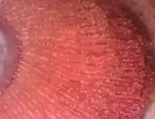 Diagnosis of amyloodiniosis consists of observing typical clinical signs and using nonlethal techniques. A cytological approach by wet mount examinations of skin scrapes and gill biopsies is recommended to detect trophonts. Anaesthetized small-size fish can be directly observed under a stereomicroscope by gently lifting the opercular structure. The same approach can also be adopted for post-mortem fish, though it is better to examine fish that are freshly dead, as parasites often detach shortly after host death.[1][3] Dropping some diluted Lugol’s iodine onto skin or gills can help to improve A. ocellatum detection, since the iodine reacts with the starch-containing trophonts, colouring them in dark brown/black.[1]