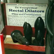 A rectal or anal dilator is a medical device similar to a speculum designed to open and relax the internal/external anal sphincter and rectum in order to facilitate medical inspection or relieve constipation.[1] One early version of a rectal dilator was Dr. Young's Ideal Rectal Dilators, invented in 1892.
