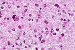 | Micrograph of an anaplastic astrocytoma. H&E stain. | |