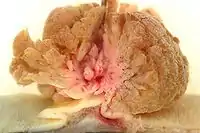 - Gross examination – the examination of diseased tissues with the naked eye. This is important especially for large tissue fragments, because the disease can often be visually identified. It is also at this step that the pathologist selects areas that will be processed for histopathology. The eye can sometimes be aided with a magnifying glass or a stereo microscope, especially when examining parasitic organisms.