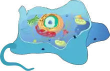 Unlike plant cells, animal cells have neither a cell wall nor chloroplasts. Vacuoles, when present, are more in number and much smaller than those in the plant cell. The body tissues are composed of numerous types of cell, including those found in muscles, nerves and skin. Each typically has a cell membrane formed of phospholipids, cytoplasm and a nucleus. All of the different cells of an animal are derived from the embryonic germ layers. Those simpler invertebrates which are formed from two germ layers of ectoderm and endoderm are called diploblastic and the more developed animals whose structures and organs are formed from three germ layers are called triploblastic.[13] All of a triploblastic animal's tissues and organs are derived from the three germ layers of the embryo, the ectoderm, mesoderm and endoderm.