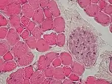 Muscle cells (myocytes) form the active contractile tissue of the body. Muscle tissue functions to produce force and cause motion, either locomotion or movement within internal organs. Muscle is formed of contractile filaments and is separated into three main types; smooth muscle, skeletal muscle and cardiac muscle. Smooth muscle has no striations when examined microscopically. It contracts slowly but maintains contractibility over a wide range of stretch lengths. It is found in such organs as sea anemone tentacles and the body wall of sea cucumbers. Skeletal muscle contracts rapidly but has a limited range of extension. It is found in the movement of appendages and jaws. Obliquely striated muscle is intermediate between the other two. The filaments are staggered and this is the type of muscle found in earthworms that can extend slowly or make rapid contractions.[18] In higher animals striated muscles occur in bundles attached to bone to provide movement and are often arranged in antagonistic sets. Smooth muscle is found in the walls of the uterus, bladder, intestines, stomach, oesophagus, respiratory airways, and blood vessels. Cardiac muscle is found only in the heart, allowing it to contract and pump blood round the body.