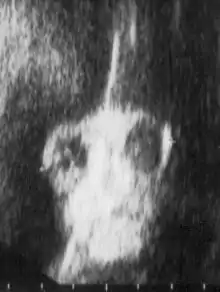 Ultrasound image of fetus with anencephaly.