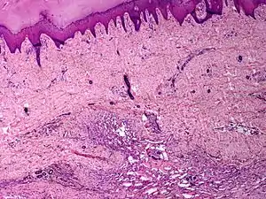 It is a vascular malformation wherein blood vessels proliferate along with accompanying mature fat and fibrous tissue, lymphatics and sometimes nerves.[2] They may involve skin, subcutaneous tissue, skeletal muscle and occasionally bone.[2]