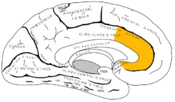 Medial surface of left cerebral hemisphere, with anterior cingulate highlighted