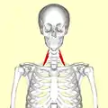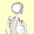 The posterior scalene, (Latin: scalenus posterior) is the smallest and most deeply seated of the scalene muscles. It arises, by two or three separate tendons, from the posterior tubercles of the transverse processes of the lower two or three cervical vertebrae, and is inserted by a thin tendon into the outer surface of the second rib, behind the attachment of the anterior scalene. It is supplied by cervical nerves C5, C6 and C7. It is occasionally blended with the middle scalene.